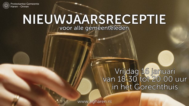 ![]() Iedereen, jong en oud, is welkom op de eerste nieuwjaarsreceptie van de Protestantse Gemeente Haren-Onnen. Op 16 januari van 18:30-20:00 uur is iedereen in een informele sfeer welkom in het Gorechthuis voor een hapje en een drankje en te toasten op het nieuwe jaar. | ||