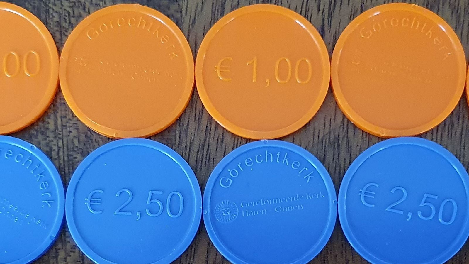 In onze gemeente maken we gebruik van collectemunten. Bij alle kerkelijke collectes kunt u deze munten gebruiken. De collectemunten hebben als voordeel dat u niet steeds op zoek hoeft naar (klein-)geld voor de collectes. Het voordeel voor de kerk en het milieu is dat deze munten na reiniging hergebruikt kunnen worden. ![]() Er zijn oranje munten met een waarde van € 1,00 en paarse munten van € 2,50. Collectemunten kunnen worden besteld per 25 x € 1,00 of 10 x € 2,50 door overmaking van het totaalbedrag (€ 25,00 of een veelvoud daarvan) onder vermelding van set oranje en of set paars op rekening ING bank NL80 INGB 0000 8726 47 ten name van de Gereformeerde Kerk Haren-Onnen. Na overmaking van het bedrag worden de collectemunten zo spoedig mogelijk bij u bezorgd. Met de bestellingen van de collectemunten is belastingvoordeel te behalen. U kunt de betalingen als giften aftrekken bij uw belastingaangifte. Dat voordeel kunt u eventueel opnieuw schenken aan uw kerk. Naast het bijdragen met collectemunten is het nog steeds mogelijk uw collecte bijdragen contant, via de app of via internet bankieren over te maken. | ||